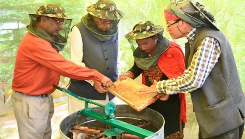कृषि मंत्री गणेश जोशी ने अपने शासकीय आवास में निकाला शहद