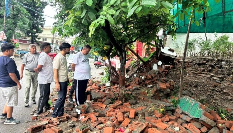 भारी बारिश से क्षतिग्रस्त दीवार का निरीक्षण करने पहुंचे कैबिनेट मंत्री गणेश जोशी, दिए त्वरित मरम्मत के निर्देश