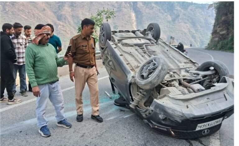 घोलतीर के पास हाईवे पर पलटी कार, रुद्रप्रयाग पुलिस ने चालक को निकाला सुरक्षित बाहर