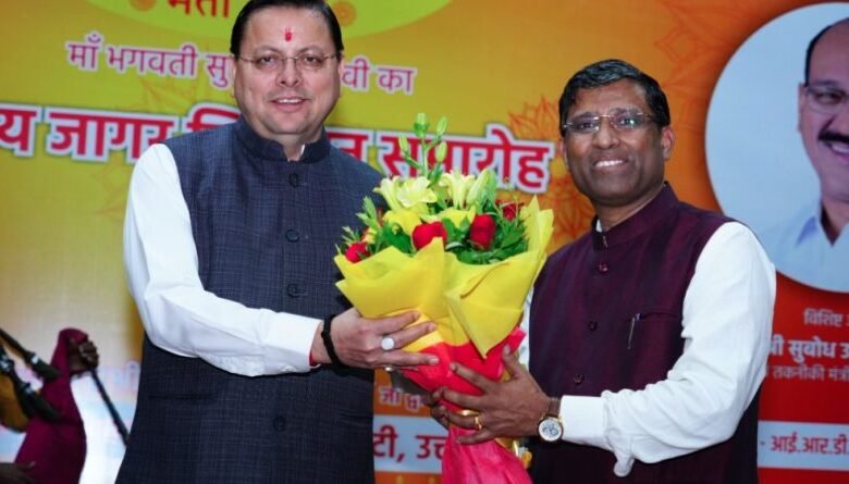 देहरादून। मुख्यमंत्री पुष्कर सिंह धामी आई आर डी टी ऑडिटोरियम देहरादून में हिमालयन हेरिटेज सोसाइटी द्वारा आयोजित भगवती सुरकंडा मां दिव्य जागर विमोचन समारोह में शामिल हुए| मुख्यमंत्री ने जागर गायक प्रीतम भरतवाण के सुरकंडा देवी पर जागर का विमोचन किया ।