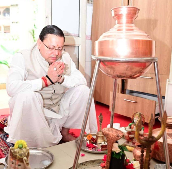 शारदीय नवरात्रि की शुरुआत पर सीएम धामी ने की पूजा-अर्चना