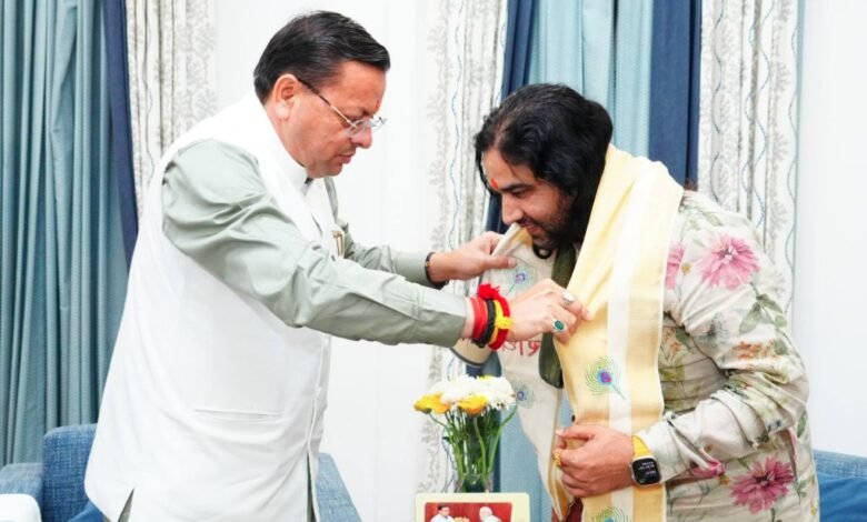 देहरादून। उत्तराखंड के मुख्यमंत्री पुष्कर सिंह धामी ने अपने शासकीय आवास पर प्रसिद्ध कथा वाचक एवं आध्यात्मिक गुरु देवकीनंदन ठाकुर महाराज का स्वागत एवं अभिनंदन किया।