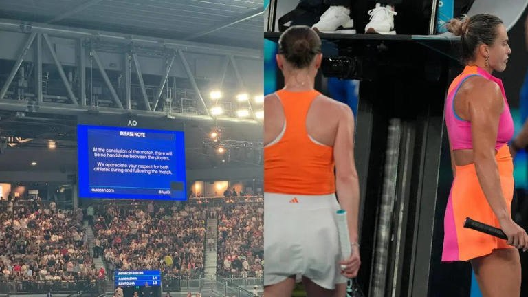 मेलबर्न — रॉड लेवर एरेना के प्रतिष्ठित नीले हार्डकोर्ट, जो आमतौर पर खेल भावना और सौहार्द के प्रतीक होते हैं, गुरुवार, 29 जनवरी 2026 को भू-राजनीतिक दरार के गवाह बन गए। ऑस्ट्रेलियन ओपन के इस हाई-स्टेक सेमीफाइनल मुकाबले में भारत-पाकिस्तान क्रिकेट के हालिया तनावपूर्ण संबंधों जैसी झलक देखने को मिली। दुनिया की नंबर 1 खिलाड़ी आर्यना साबालेंका की यूक्रेन की एलिना स्वितोलिना पर 6-2, 6-3 से हुई जीत एक ‘हैंडशेक विवाद’ (हाथ मिलाने के विवाद) के कारण फीकी पड़ गई, जिसने एक बार फिर इस बहस को हवा दे दी है कि क्या खेल को कभी वैश्विक संघर्षों से पूरी तरह अलग किया जा सकता है।