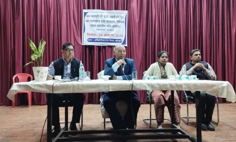 पौड़ी: राज्य सरकार द्वारा स्नातक स्तरीय प्रतियोगिता परीक्षा-2025 में कथित नकल के आरोपों की जांच हेतु न्यायमूर्ति यू०सी० ध्यानी (सेवानिवृत्त), उच्च न्यायालय, नैनीताल की अध्यक्षता में गठित एकल सदस्यीय जांच आयोग के अंतर्गत कोटद्वार नगर निगम प्रेक्षागृह में लोक सुनवाई/जन संवाद कार्यक्रम आयोजित किया गया।
