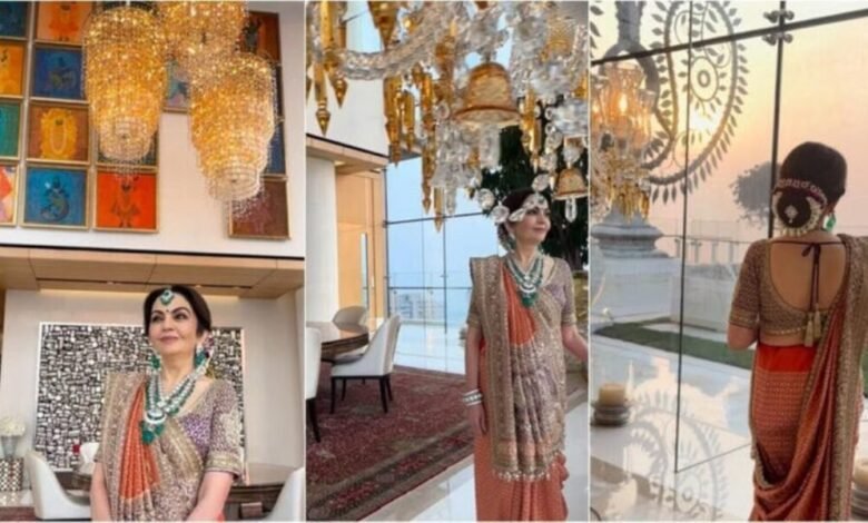 वीडियो में नीता अंबानी को पन्ना और हीरे के गहनों के साथ पारंपरिक नारंगी और सुनहरी साड़ी में इन हरे-भरे हिस्सों से गुजरते हुए देखा गया। हाई-टेक कांच के इंटीरियर से लेकर छतों की शांत हरियाली तक का यह बदलाव इमारत के दर्शन को दर्शाता है: दक्षिण मुंबई की शहरी अराजकता के बीच एक शांतिपूर्ण अभयारण्य।