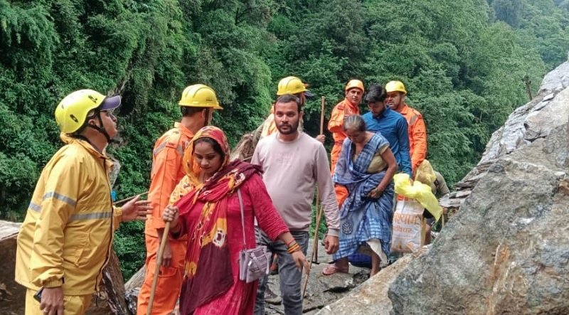 गौरीकुंड के समीप क्षतिग्रस्त मार्ग पर सुरक्षा बलों की मौजूदगी में श्रद्धालुओं को सुरक्षित पार कराया जा रहा है। प्रशासन की ओर से लगातार निगरानी रखी जा रही है ताकि यात्रा में किसी प्रकार की बाधा न उत्पन्न हो।