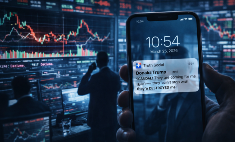 यह विवाद उन सौदों के सटीक समय (timing) पर केंद्रित है, जिन्होंने कच्चे तेल की कीमतों में 15% की भारी गिरावट और अमेरिकी शेयरों में आई तेजी का बिल्कुल सही अनुमान लगा लिया था—ये बाजार हलचलें सीधे तौर पर सोमवार दोपहर राष्ट्रपति के सोशल मीडिया पोस्ट के बाद शुरू हुई थीं।